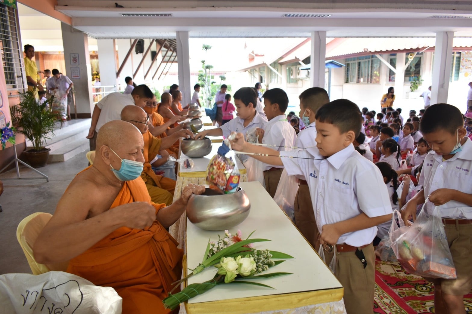 ผอ.ยุวลักษณ์ ชาติชำนาญ ผู้อำนวยการสถานศึกษาฯ นำคณะครู บุคลากร และนักเรียนโรงเรียนเทศบาล ๔ วัดศรีบัวบาน เข้าร่วมกิจกรรมเนื่องในวันคล้ายวันพระราชสมภพ พระบาทสมเด็จพระบรมชนกาธิเบศร มหาอดุลยเดชมหาราช บรมนาถบพิตร วันชาติ และวันพ่อแห่งชาติ ๕ ธันวาคม ประจำปี พ.ศ.๒๕๖๓ เมื่อวันที่ ๔ ธันวาคม ๒๕๖๓ ณ อาคารสังวรวีรวัฒน์ โรงเรียนเทศบาล ๔ วัดศรีบัวบาน