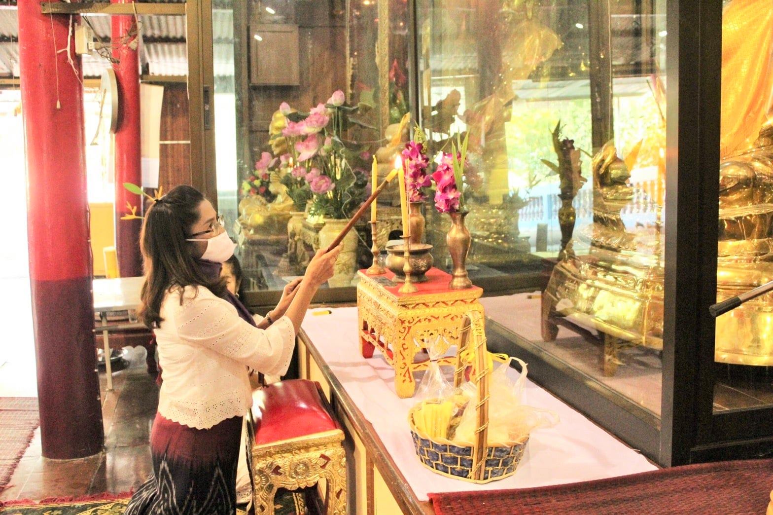ผอ.ยุวลักษณ์ ชาติชำนาญ ผู้อำนวยการสถานศึกษา โรงเรียนเทศบาล ๔ วัดศรีบัวบาน นำคณะครู และนักเรียนประถมศึกษาปีที่ ๔ และ ๕ เข้าวัดทำบุญ เนื่องในวันพระ ในวันที่ ๘ ธันวาคม ๒๕๖๓ ณ วัดศรีบัวบาน อำเภอเมืองสุพรรณบุรี จังหวัดสุพรรณบุรี