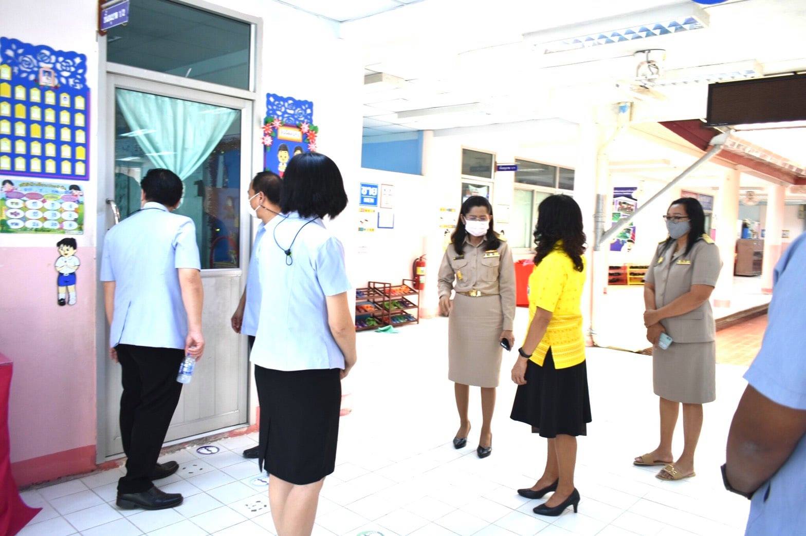 ผอ.ยุวลักษณ์ ชาติชำนาญ ผู้อำนวยการสถานศึกษาฯ ให้การต้อนรับนายแพทย์สาธารณสุขจังหวัดสุพรรณบุรี และคณะ เข้าตรวจเยี่ยมโรงเรียนเทศบาล ๔ วัดศรีบัวบาน ในการเฝ้าระวังสถานการณ์การแพร่ระบาดของโรคติดเชื้อไวรัสโคโรนา (COVID-19) และมอบแอลกอฮอล์ เพื่อใช้ในการทำความสะอาดในสถานศึกษา เมื่อวันที่ ๑ กุมภาพันธ์ ๒๕๖๔ ณ อาคารปฏิบัติการ โรงเรียนเทศบาล ณ วัดศรีบัวบาน