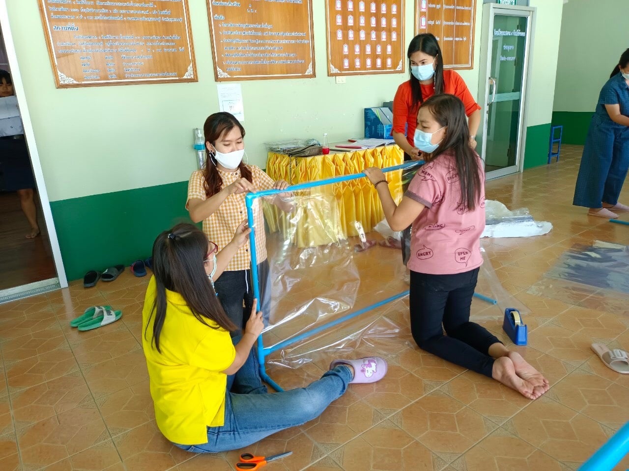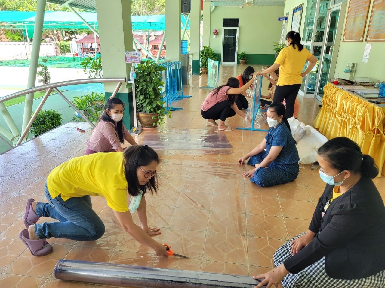 วันที่ ๑๑ มิถุนายน ๒๕๖๔ ผอ ยุวลักษณ์. ชาติชำนาญ คณะครูโรงเรียนเทศบาล ๔ วัดศรีบัวบาน ร่วมแรง ร่วมใจ ในการจัดทำแผงฉากกั้นเตรียมความพร้อมมาตรการ เฝ้าระวังป้องกันโรคติดเชื้อไวรัสโคโรนา (COVID-19) และสำหรับ รับ-ส่ง การบ้าน/ใบงาน เตรียมความพร้อมก่อนเปิดภาคเรียน ปีการศึกษา ๒๕๖๔