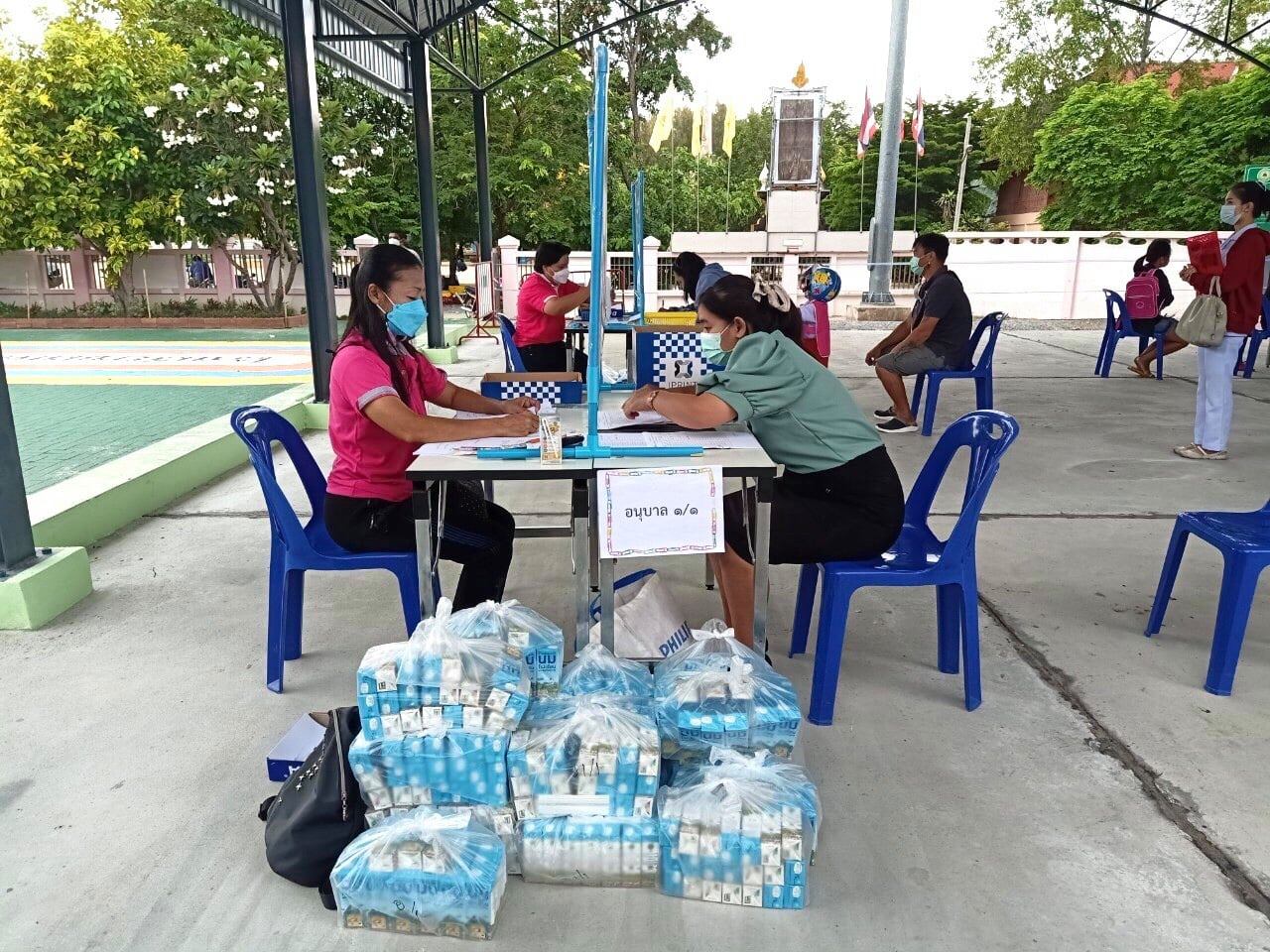 เมื่อวันที่ ๑๕ กันยายน ๒๕๖๔ เวลา ๐๘.๓๐ น. คณะครูประจำชั้นระดับชั้นอนุบาลปีที่ ๑-๓ รับและส่งการบ้าน/ใบงาน แจกนม และเงินค่าอาหารกลางวัน โดยจัดการเรียนการสอน แบบ On-hand ให้กับนักเรียนทุกคนและจัดการเรียนการสอนแบบ On-Demand เพื่อเสริมทักษะให้นักเรียนได้รับการพัฒนาอย่างหลากหลายรูปแบบในสถานการณ์การแพร่ระบาดของไวรัสโคโรนา ๒๐๑๙ (COVID-๑๙) ปีการศึกษา ๒๕๖๔ โดยมี ผอ. ยุวลักษณ์ ชาติชำนาญ ผู้อำนวยการศึกษาฯ มาตรวจเยี่ยมและให้กำลังใจคณะครูที่ปฏิบัติหน้าที่ ให้เป็นไปด้วยความเรียบร้อย