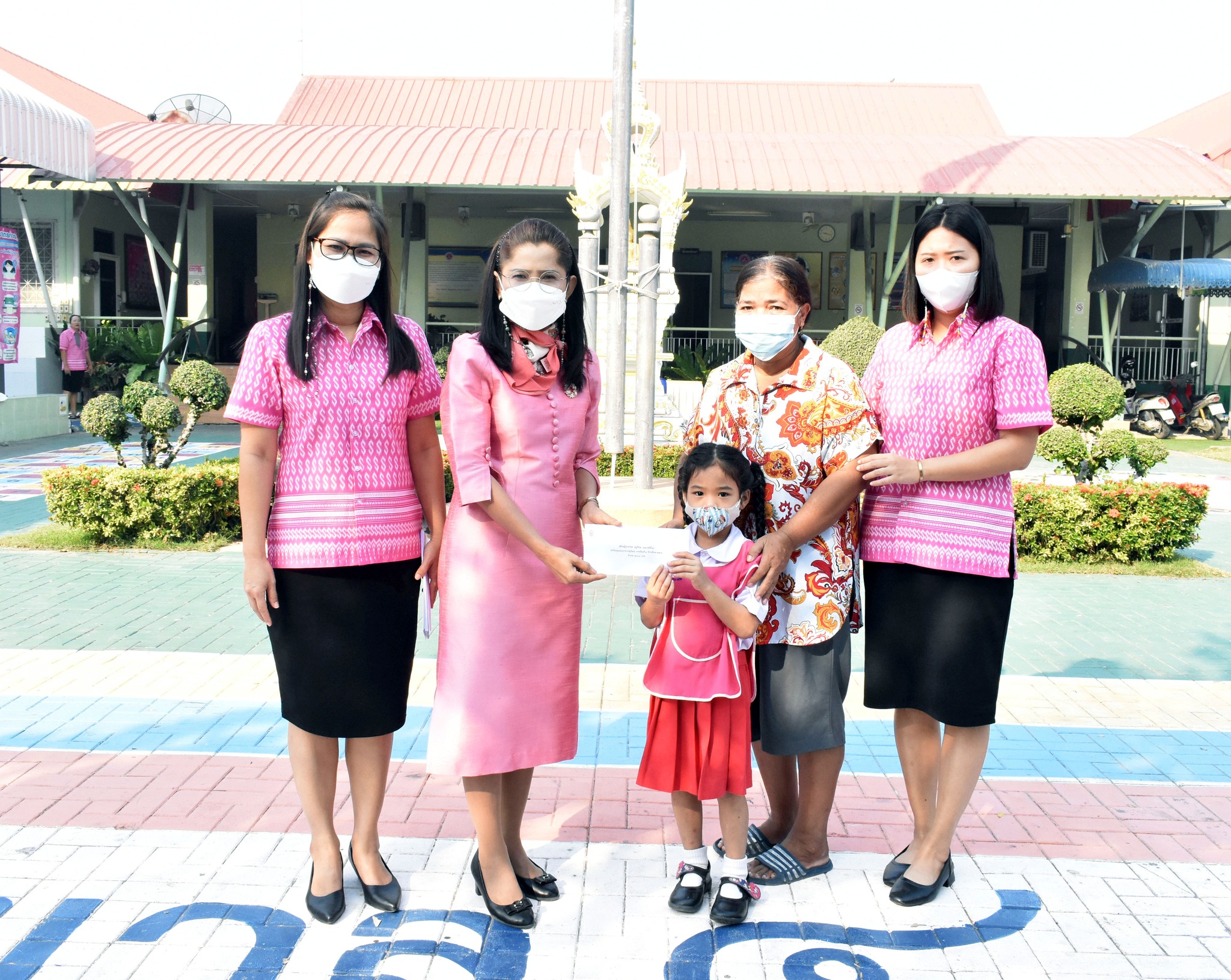 วันที่ ๒ กุมภาพันธ์ ๒๕๖๖ เวลา ๐๙.๐๐ น. ผอ.ยุวลักษณ์ ชาติชำนาญ ผู้อำนวยการสถานศึกษาฯ พร้อมคณะครู มอบทุนการศึกษา เงินอุดหนุนแบบมีเงื่อนไขของกองทุนเสมอภาค ให้กับนักเรียนทุนเสมอภาค (กลุ่มต่อเนื่อง) ภาคเรียนที่ ๒/๒๕๖๕ ณ โรงเรียนเทศบาล ๔ วัดศรีบัวบาน