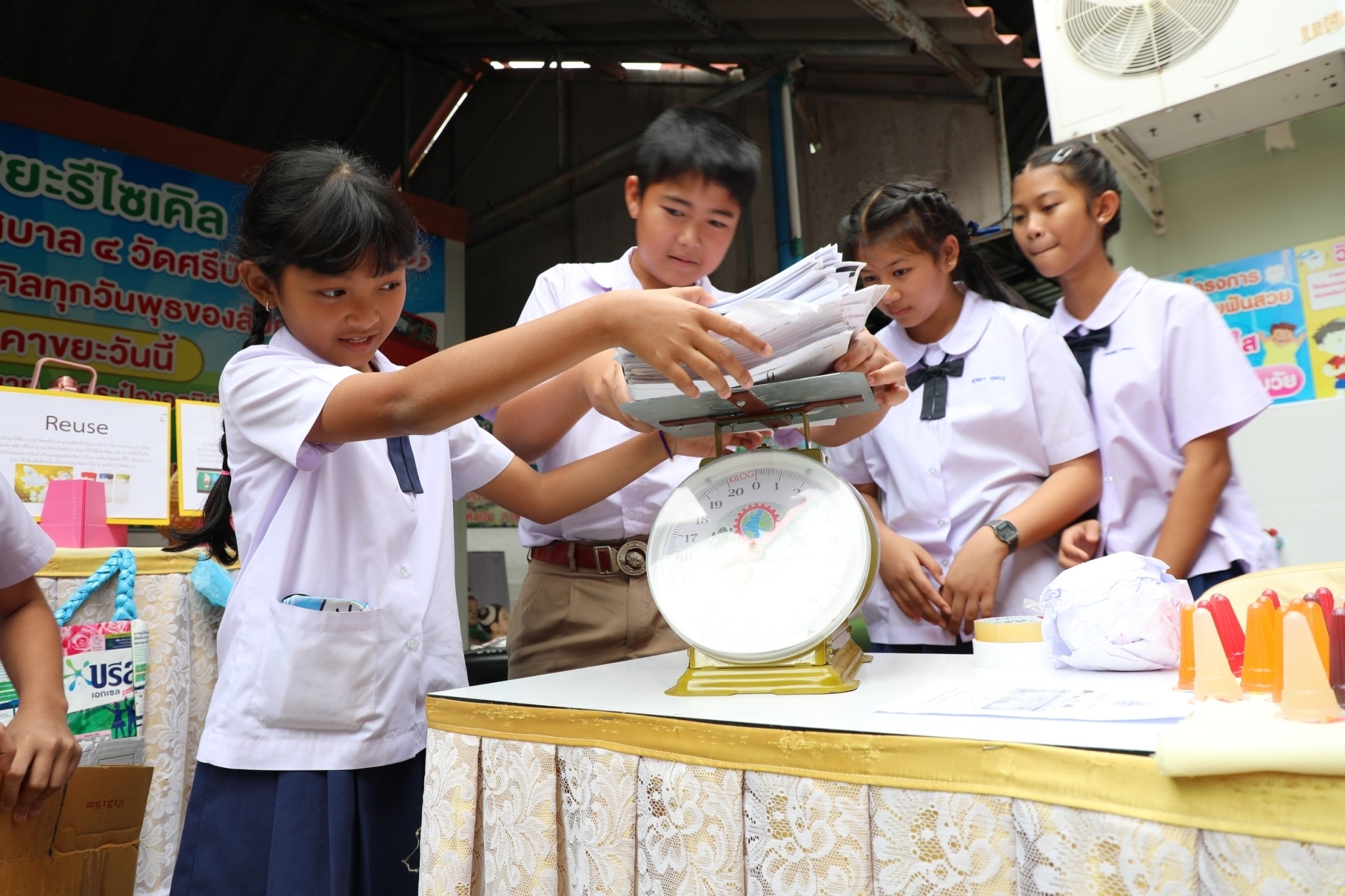 ผอ.ยุวลักษณ์ ชาติชำนาญ ผู้อำนวยการสถานศึกษาฯ พร้อม รองฯอนุสรณ์ อิฐสุวรรณ รองผู้อำนวยการสถานศึกษาฯ คณะครู บุคลากรทางการศึกษา และนักเรียนผู้รับผิดชอบ งานสิ่งแวดล้อมเกี่ยวกับกระบวนการแยกขยะ ร่วมกับเจ้าหน้าที่ลงพื้นที่เก็บข้อมูลโครงการส่งเสริมการขยายผลต้นแบบการจัดการขยะที่ต้นทางสู่พื้นที่ใหม่ พร้อมทั้งสาธิตวิธีการ ในแต่ละ ฐานที่รับผิดชอบ (ฐานธนาคารขยะ, ฐานพืชผักสวนครัว, ฐานน้ำหมักชีวภาพ, ฐานสิ่งประดิษฐ์, ฐานผลิตภัณฑ์สมุนไพร, ฐานปุ๋ยหมักจุลินทรีย์, ฐานต้นไม้ฟอกอากาศ, ฐานผลผลิตหมุนเวียน และฐานเพาะเห็ดนางฟ้า) ณ โรงเรียนเทศบาล ๔ วัดศรีบัวบาน