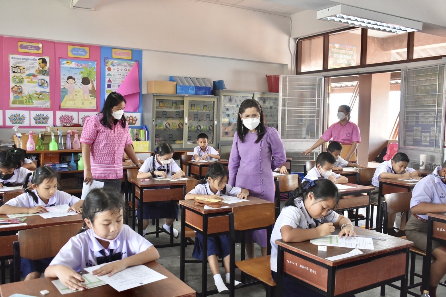 ผอ.ยุวลักษณ์ ชาติชำนาญ ผู้อำนวยการสถานศึกษาฯ เยี่ยมชมและให้กำลังใจนักเรียนในการสอบปลายภาคเรียนที่ ๒ ปีการศึกษา ๒๕๖๕ ณ อาคารสังวรวีรวัฒน์ โรงเรียนเทศบาล ๔ วัดศรีบัวบาน