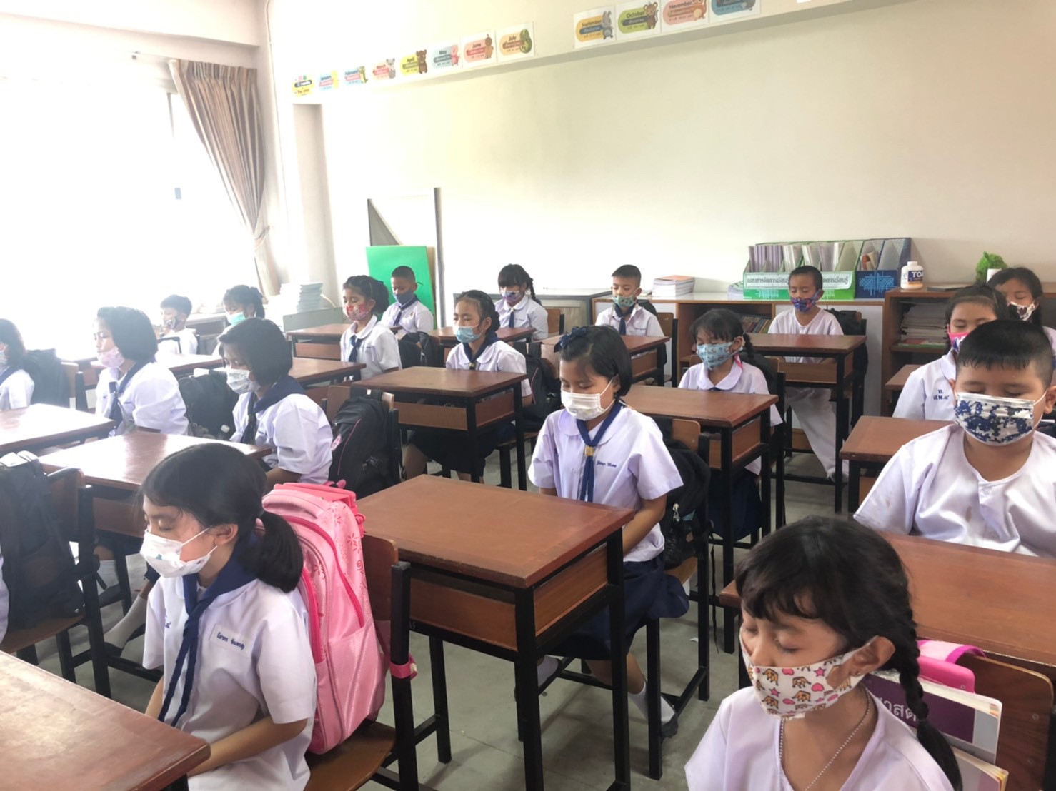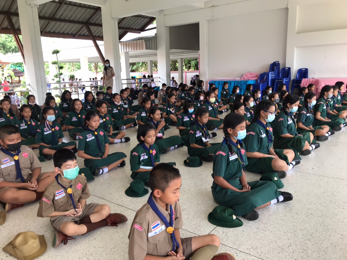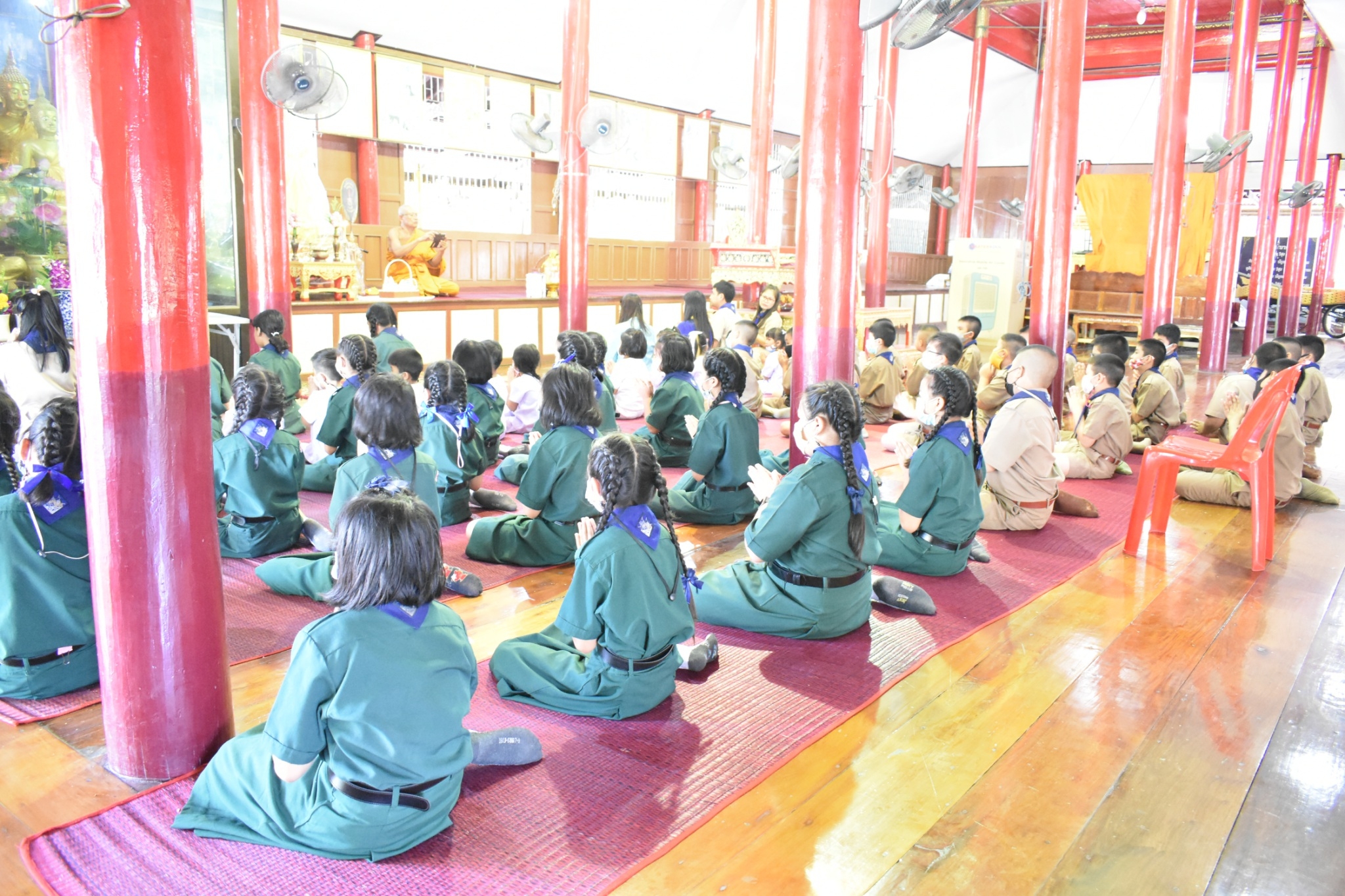 คณะครูได้นำนักเรียนร่วมกิจกรรมสวดมนต์ นั่งสมาธิ
