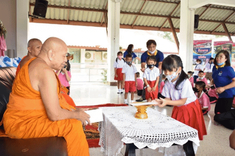 โรงเรียนเทศบาล ๔ วัดศรีบัวบาน กราบขอบพระคุณ พระครูสังวรวีรวัฒน์ เจ้าอาวาส