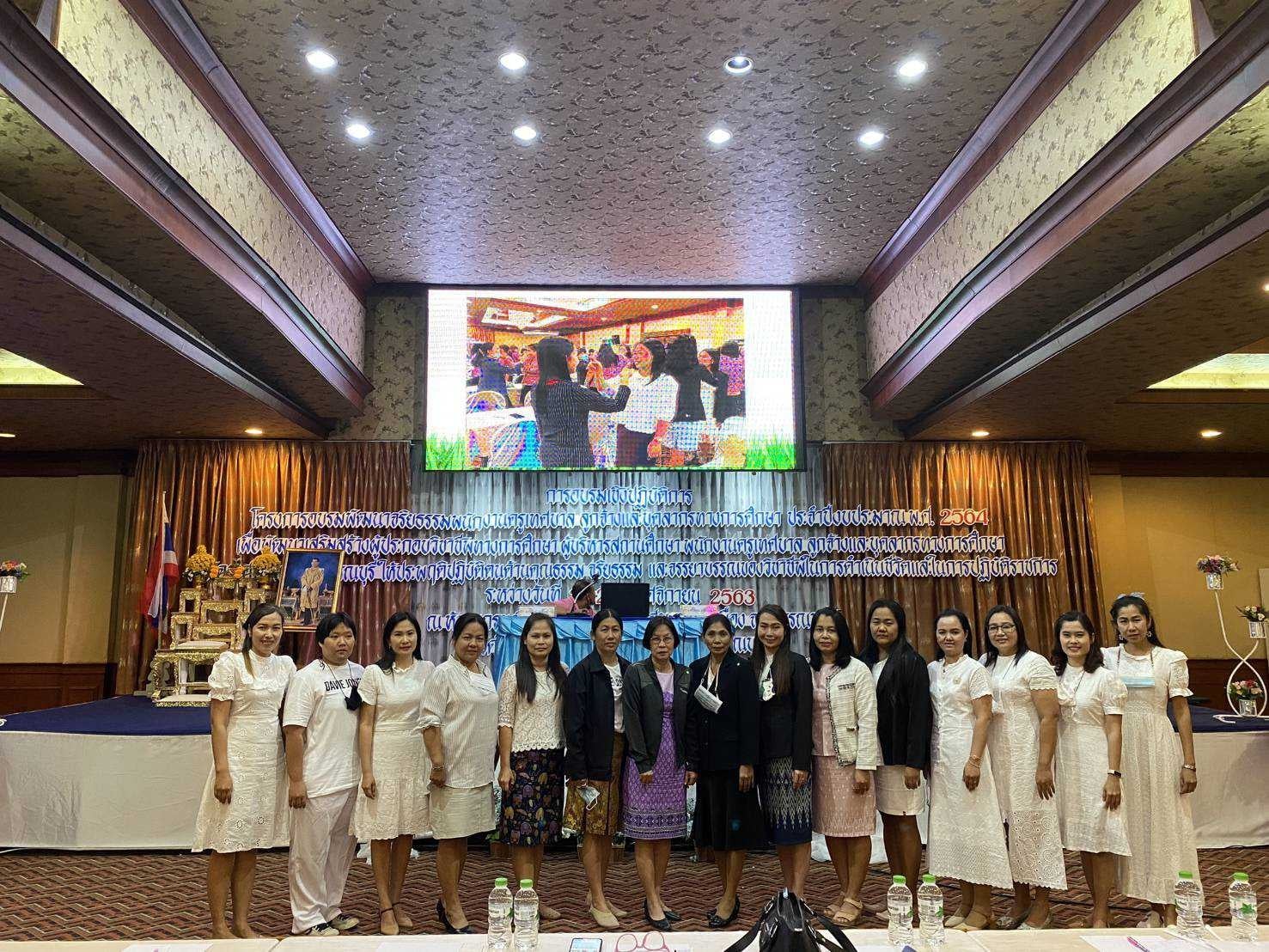 ผอ.ยุวลักษณ์ ชาติชำนาญ ผู้อำนวยการสถานศึกษาฯ นำคณะครูและบุคลากรทางการศึกษา เข้าร่วมการอบรมเชิงปฏิบัติการโครงการอบรมพัฒนาจริยธรรมพนักงานครูเทสบาล ลูกจ้างและบุคลากรทางการศึกษา ประจำปีงบประมาณ ๒๕๖๔ เพื่อพัฒนาเสริมสร้างผู้ประกอบวิชาชีพทางการศึกษา ผู้บริหารสถานศึกษา พนักงานครูเทศบาล ลูกจ้าง และบุคลากรทางการศึกษา สังกัดเทศบาลเมืองสุพรรณบุรีให้ประพฤติปฏิบัติตนด้านคุณธรรม จริยธรรมและจรรยาบรรณของวิชาชีพในการดำเนินชีวิตและในการปฏิบัติราชการ ระหว่างวันที่ ๒๘-๒๙ พฤศจิกายน ๒๕๖๓ ณ ห้องแกรนด์บอลรูม ๒ โรงแรมคุ้มสุพรรณ อำเภอเมืองสุพรรณบุรี จังหวัดสุพรรณบุรี