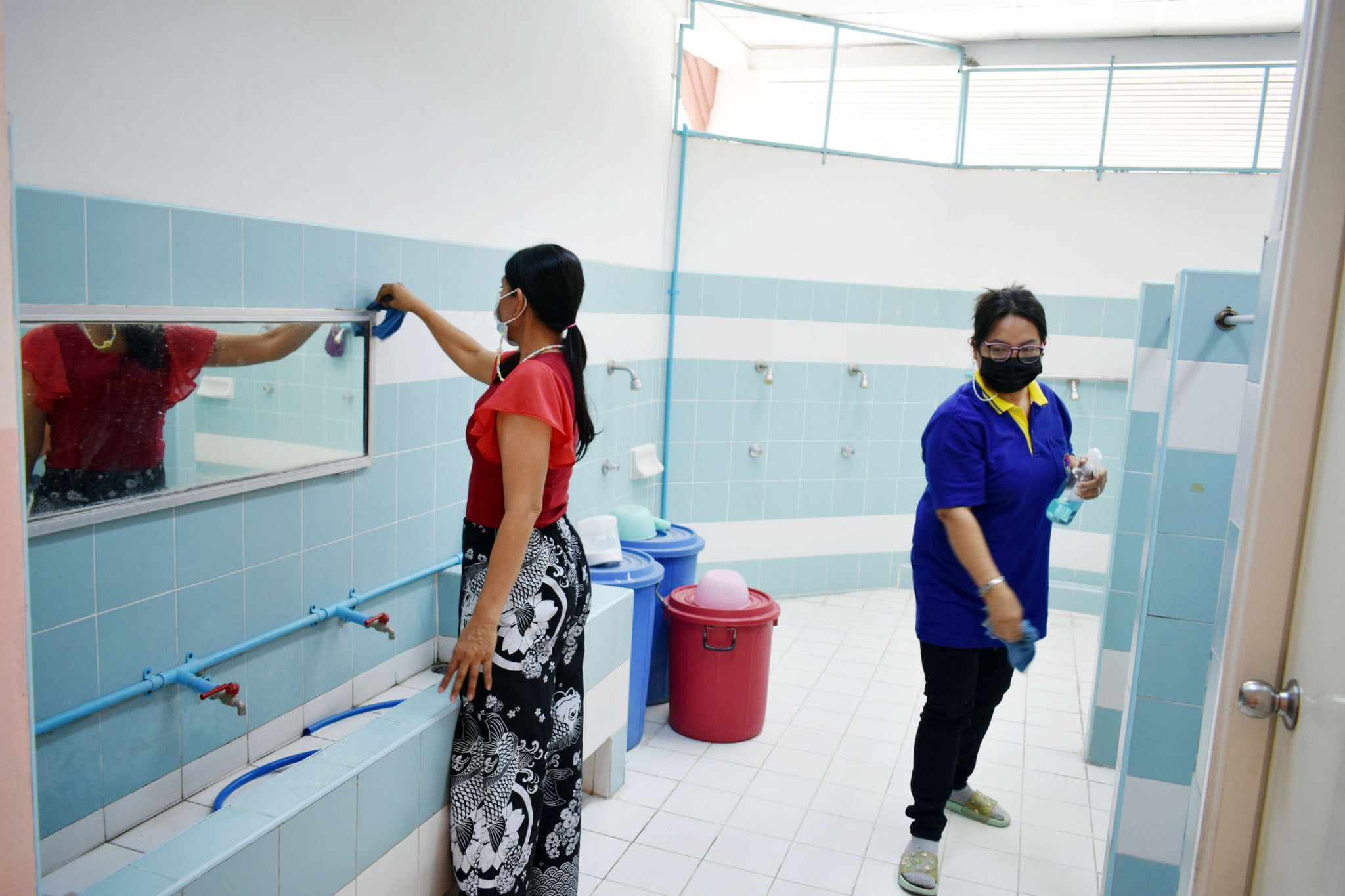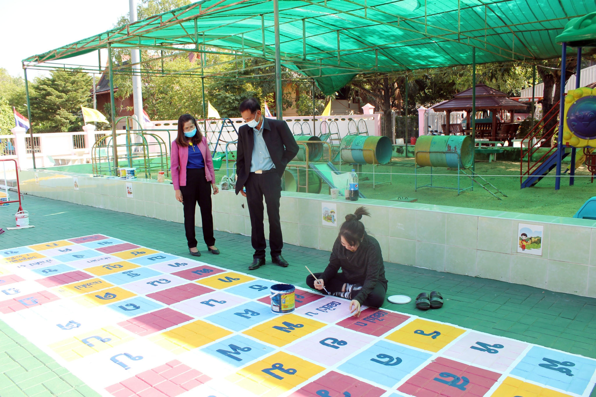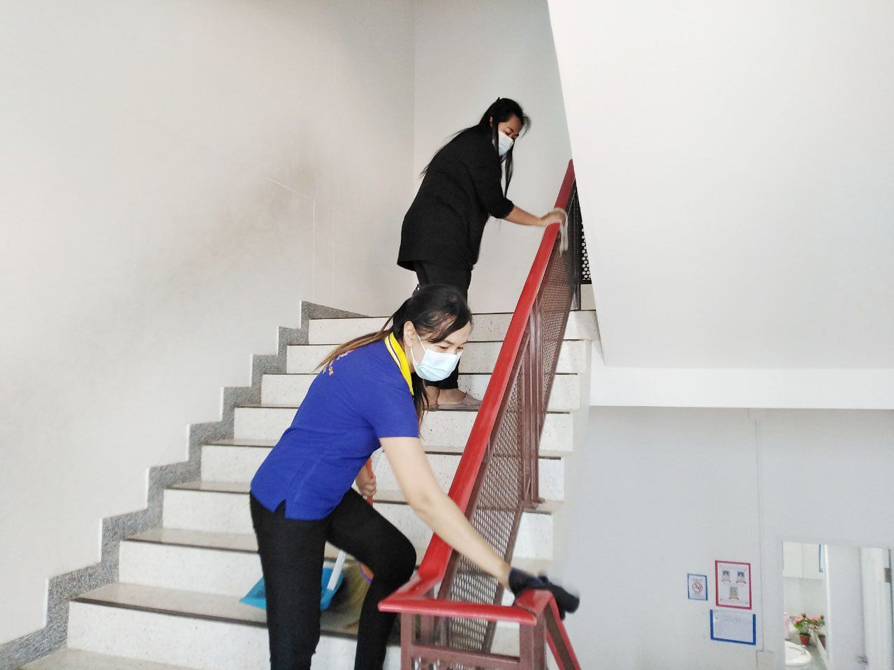 ผอ.ยุวลักษณ์ ชาติชำนาญ ผู้อำนวยการสถานศึกษาฯ ต้อนรับ ผอ.ดำรงค์ธณัช สวัสดิพรรณ์ ผู้อำนวยการกองการศึกษาฯ ที่มาตรวจเยี่ยมคณะครูร่วมทำกิจกรรม Big Cleaning อาคารสถานที่และสื่อวัสดุอุปกรณ์ที่เกี่ยวข้องกับการเรียนการสอนภายในห้องเรียน ตามสถานการณ์โคโรน่า (COVID-19) เพื่อป้องกันและควบคุมเชื้อโคโรน่า (COVID-19) วันที่ ๒๔ ธันวาคม ๒๕๖๓ ณ โรงเรียนเทศบาล ๔ วัดศรีบัวบาน