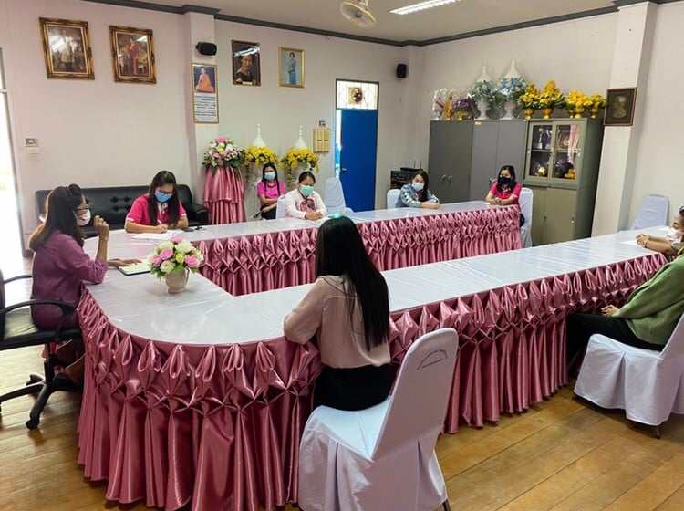 ผอ.ยุวลักษณ์ ชาติชำนาญ พร้อมคณะครูระดับสายชั้นปฐมวัย และคณะครูระดับสายชั้นประถมศึกษา ร่วมประชุมเพื่อปรึกษาหารือแนวทางมาตราการป้องกันเฝ้าระวังการแพร่ระบาดโรคติดต่อไวรัสโคโรนา 2019 (COVID-19) เตรียมใบงานและการบ้านให้กับนักเรียนทุกระดับชั้น ตามนโยบายของเทศบาลเมืองสุพรรณบุรี ในการปิดสถานศึกษาหยุดการเรียนการสอนกรณีพิเศษ ระหว่างวันที่ ๔ - ๓๑ มกราคม ๒๕๖๔ และพร้อมฝากให้คณะครูและบุคลากรทุกท่านดูแลสุขภาพสวมหน้ากากอนามัย หลีกเลี่ยงสถานที่แออัด กินร้อนช้อนส่วนตัว ล้างมือบ่อยๆ และปฏิบัติตามมาตรฐานของกระทรวงสาธารณสุขกำหนด ด้วยนะคะ ด้วยความห่วงใย จาก ท่านผอ.ยุวลักษณ์ ชาติชำนาญ ผู้อำนวยการสถานศึกษา โรงเรียนเทศบาล ๔ วัดศรีบัวบาน เมื่อวันที่ ๕ มกราคม ๒๕๖๔ ณ ห้องประชุม โรงเรียนเทศบาล ๔ วัดศรีบัวบาน