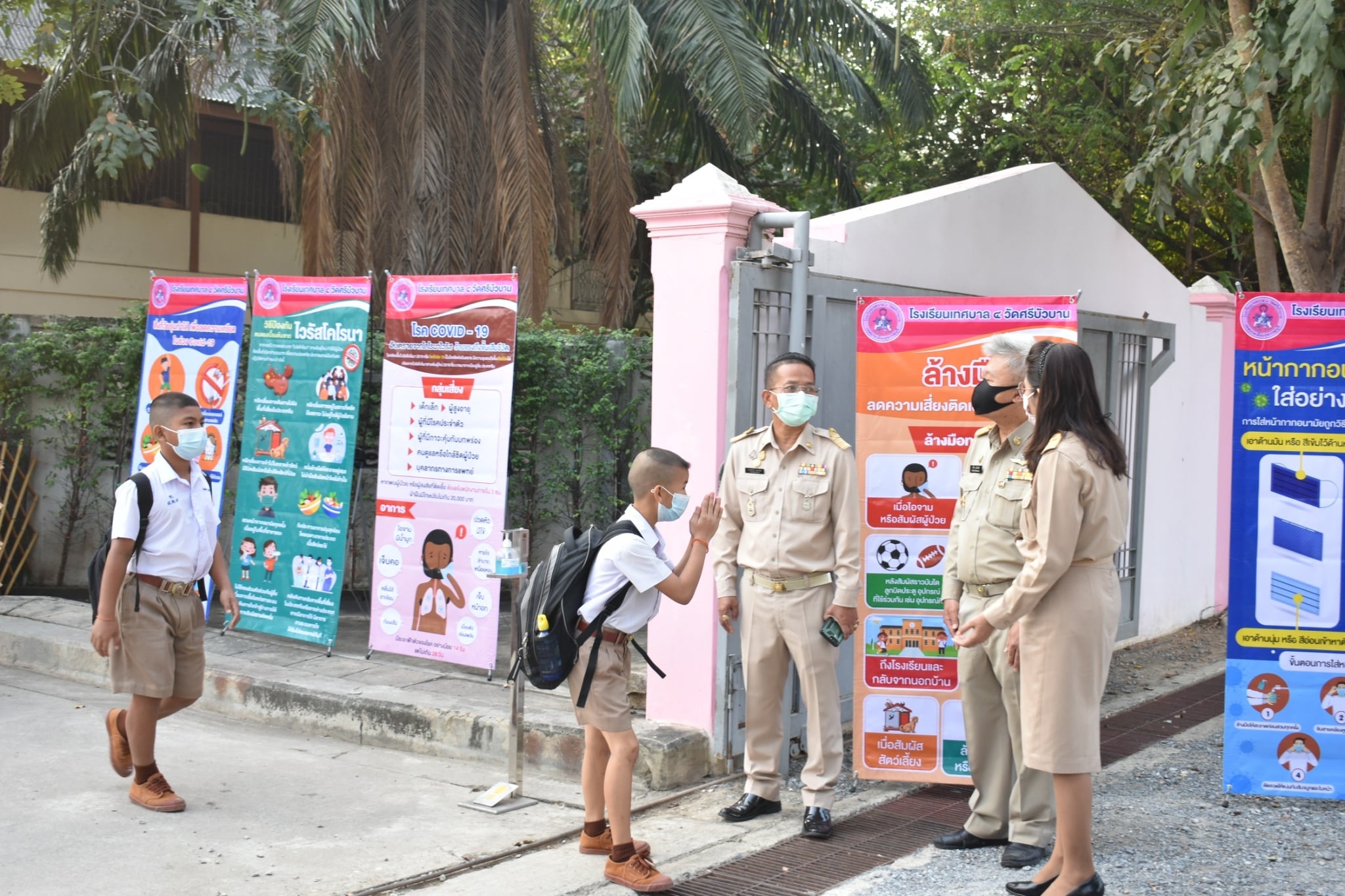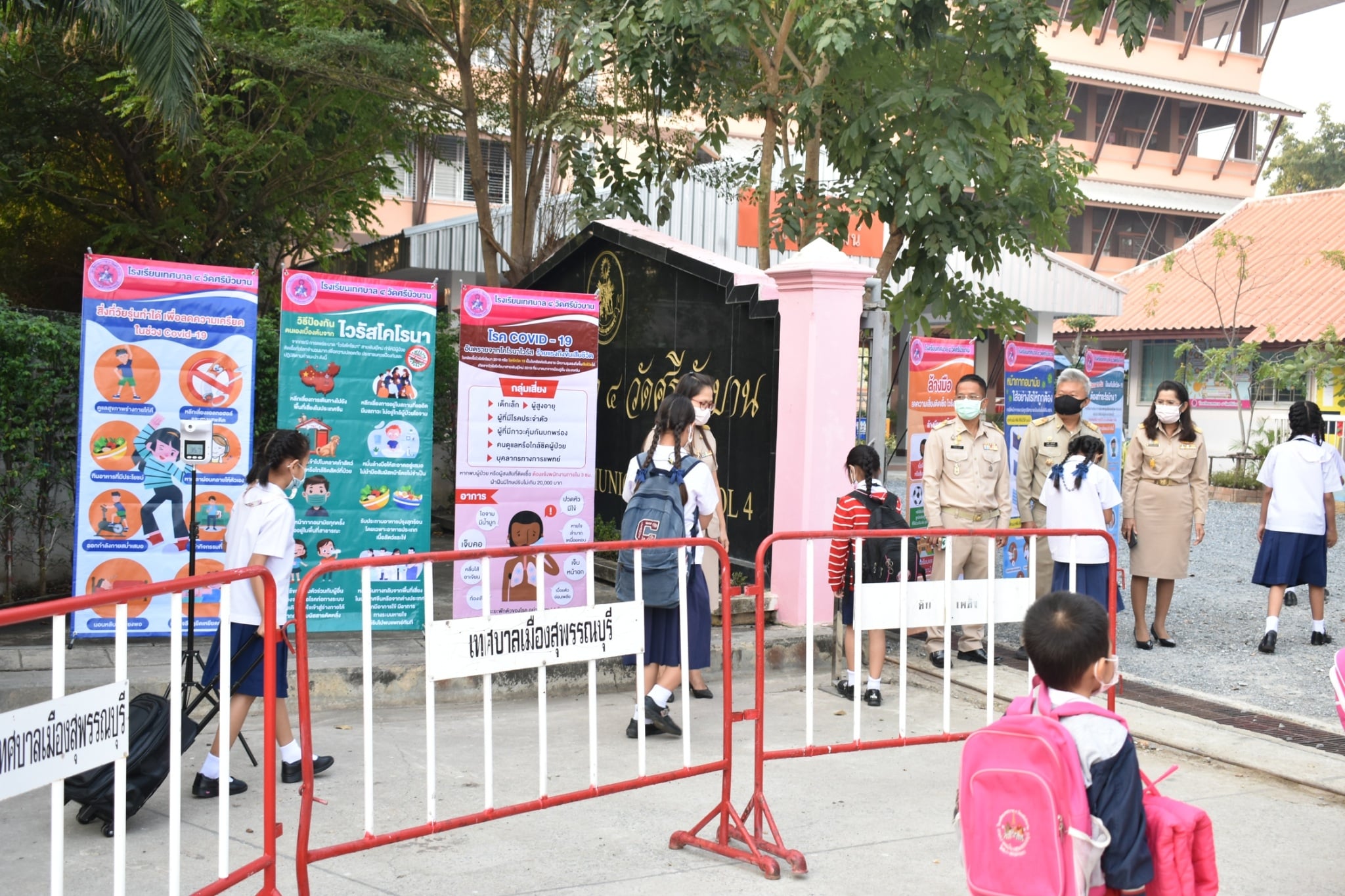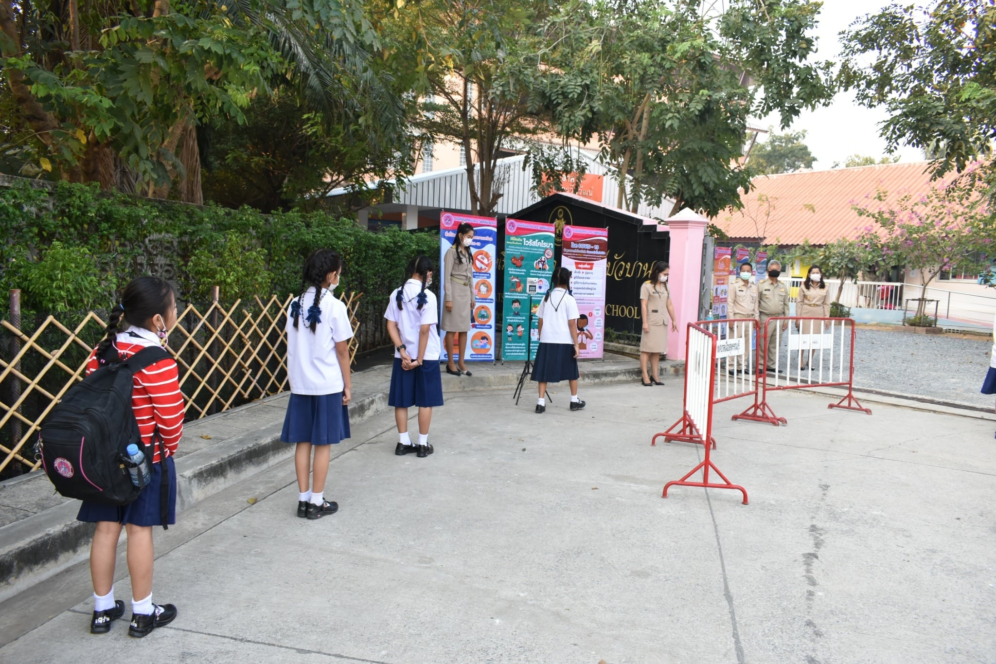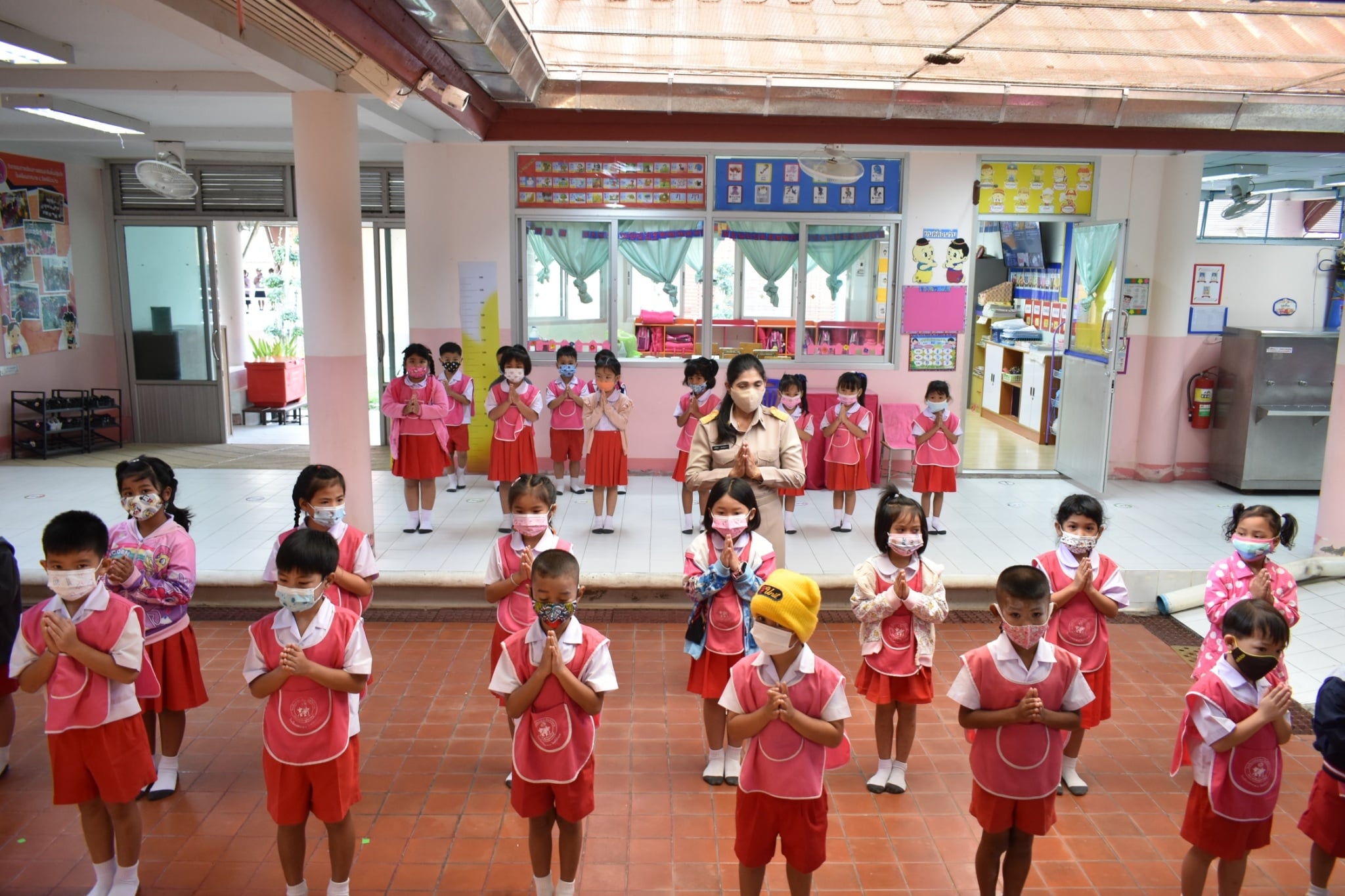 เมื่อวันที่ ๑ กุมภาพันธ์ ๒๕๖๔ ผอ.ยุวลักษณ์ ชาติชำนาญ ผู้อำนวยการสถานศึกษาฯ ให้การต้อนรับนายมนัสพงศ์ พรหมพิสิฐพงศ์ ปลัดเทศบาลเมืองสุพรรณบุรี นายขจรศักดิ์ จงสุกใส รองปลัดเทศบาลเมืองสุพรรณบุรี และนายอภิชัย เจนธีรวงศ์ หัวหน้าสำนักปลัดเทศบาลเมืองสุพรรณบุรี มาตรวจเยี่ยมและร่วมคัดกรองรักษาความปลอดภัยมาตรการเฝ้าระวังป้องกันโรคติดต่อเชื้อไวรัสโคโรนา (COVID-19) ซึ่งมีหลักปฏิบัติในการป้องกันการแพร่ระบาดของโรคติดต่อเชื้อโควิด-19 ได้แก่ จุดที่ ๑) มีจุดคัดกรองวัดอุณหภูมิ. จุดที่ ๒) สวมหน้ากากอนามัยทุกคน. จุดที่ ๓) มีจุดล้างมือด้วยสบู่และน้ำ หรือเจลแอลกอฮอล์. จุดที่ ๔)เว้นระยะห่าง อย่างน้อย ๑-๒ เมตร. จุดที่ ๕) ทำความสะอาด เปิดประตู หน้าต่างให้อากาศถ่ายเท และทำความสะอาดห้องเรียนและบริเวณต่างๆ ในช่วงพักเที่ยงและหลังเลิกเรียน. จุดที่ ๖) ลดแออัด ลดกิจกรรมการรวมตัวเป็นกลุ่ม หรือให้สั้นลง