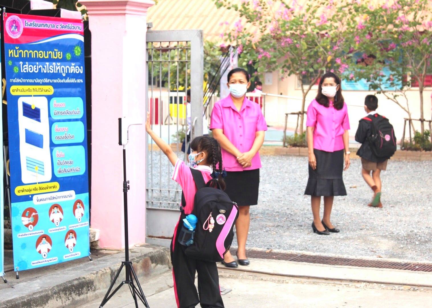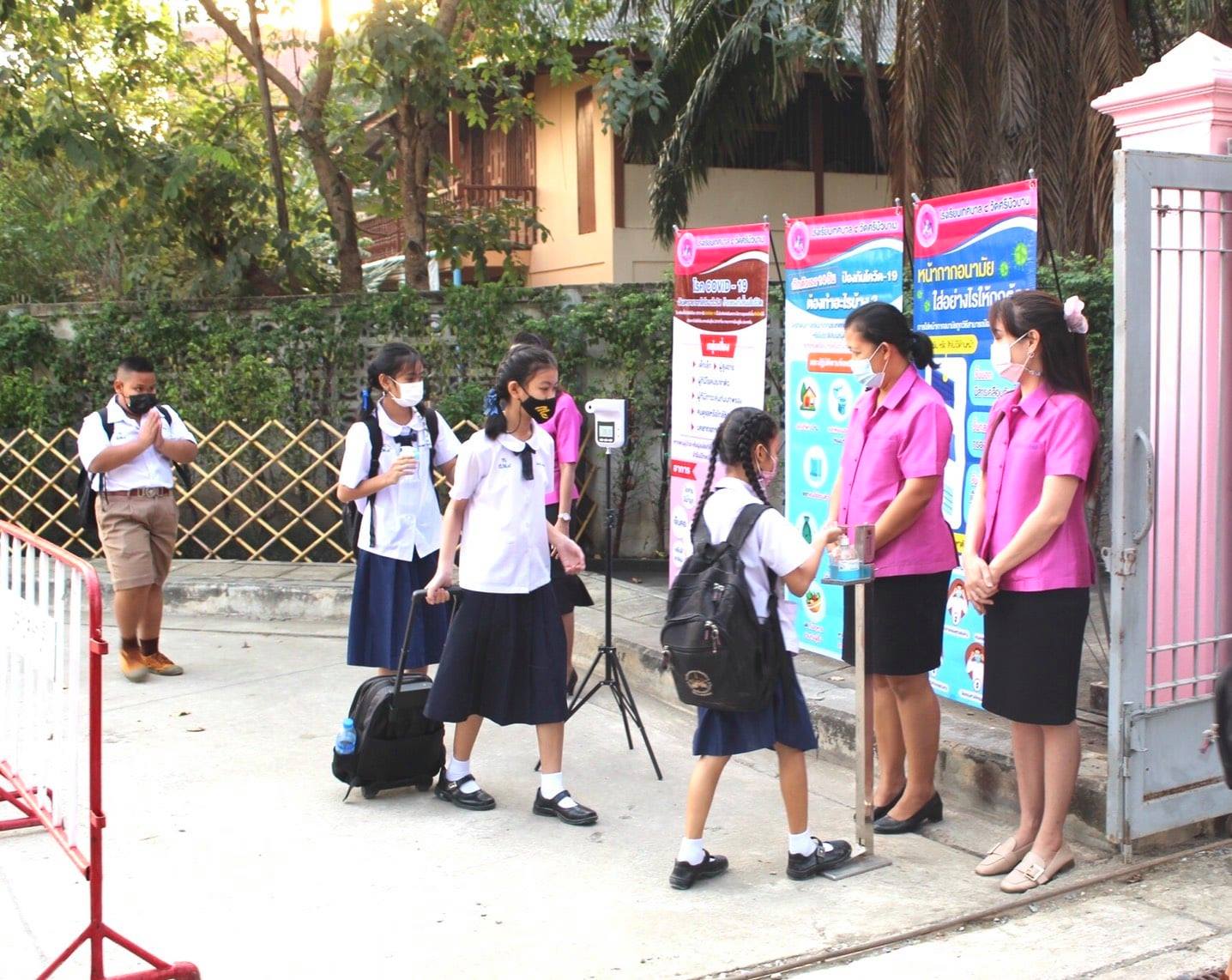 ผอ.ยุวลักษณ์ ชาติชำนาญ ผู้อำนวยการสถานศึกษาฯ และคณะครู ร่วมคัดกรองรักษาความปลอดภัยมาตรการเฝ้าระวังป้องกันโรคติดต่อเชื้อไวรัสโคโรนา (COVID-19) ซึ่งมีหลักปฏิบัติในการป้องกันการแพร่ระบาดของโรคติดต่อเชื้อไวรัสโคโรนา ได้แก่ จุดที่ ๑) มีจุดคัดกรองวัดอุณหภูมิ. จุดที่ ๒) สวมหน้ากากอนามัยทุกคน. จุดที่ ๓) มีจุดล้างมือด้วยสบู่และน้ำ หรือเจลแอลกอฮอล์. จุดที่ ๔)เว้นระยะห่าง อย่างน้อย ๑-๒ เมตร. จุดที่ ๕) ทำความสะอาด เปิดประตู หน้าต่างให้อากาศถ่ายเท และทำความสะอาดห้องเรียนและบริเวณต่างๆ ในช่วงพักเที่ยงและหลังเลิกเรียน. จุดที่ ๖) ลดแออัด ลดกิจกรรมการรวมตัวเป็นกลุ่ม หรือให้สั้นลง เมื่อวันที่ ๒ กุมภาพันธ์ ๒๕๖๔