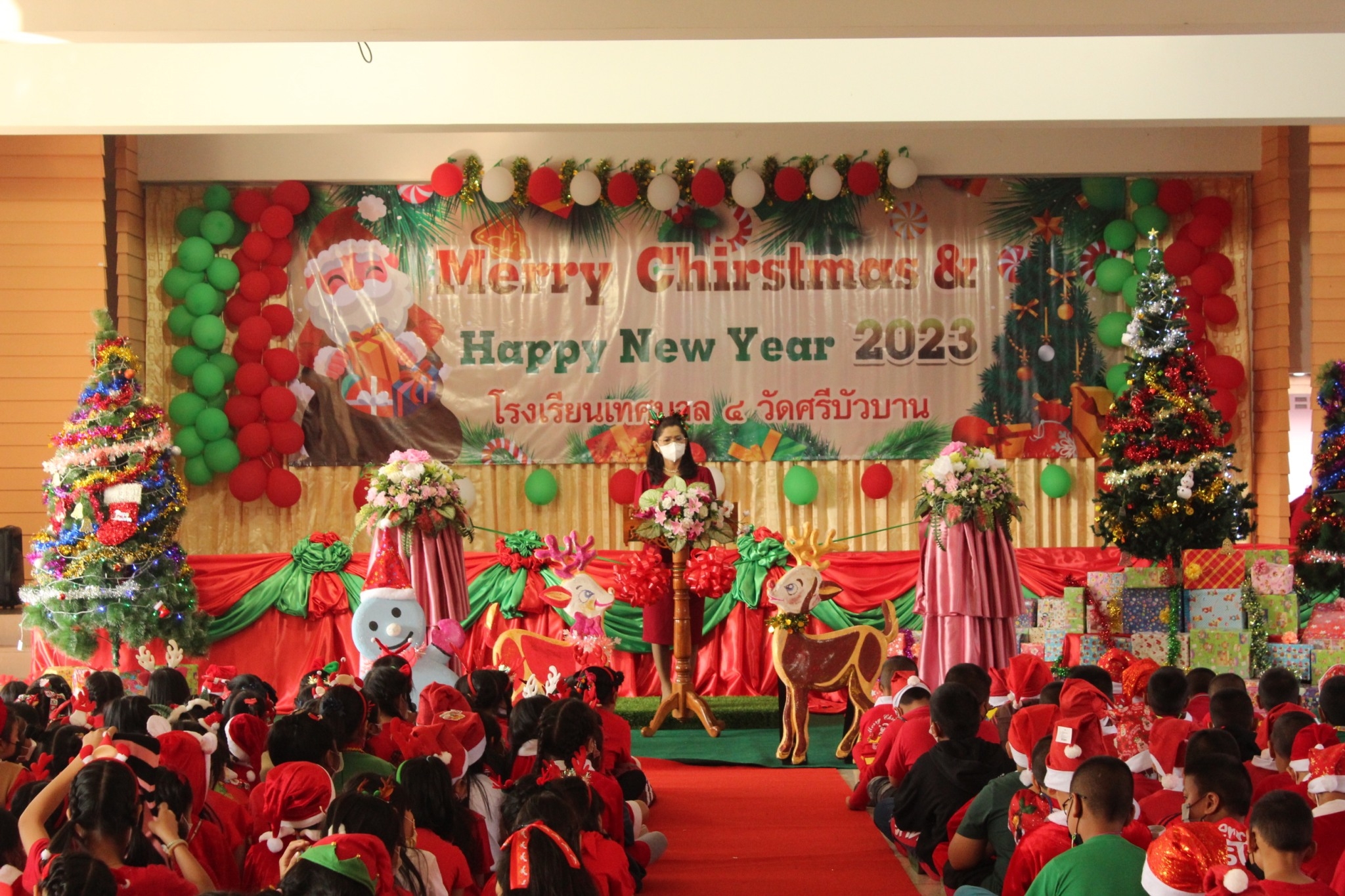 วันที่ ๒๓ ธันวาคม ๒๕๖๕ นักเรียนโรงเรียนเทศบาล ๔ วัดศรีบัวบาน เข้าร่วมพิธีเปิดกิจกรรม Merry Christmas & Happy New Year 2023 โดยมีผอ.ยุวลักษณ์ ชาติชำนาญ ผู้อำนวยการสถานศึกษา เป็นประธานเปิดกิจกรรม และนายอนุสรณ์ อิฐสุวรรณ รองผู้อำนวยการสถานศึกษา กล่าวคำรายงานกิจกรรมในกิจกรรมนี้ ณ ลานอเนกประสงค์ อาคารสังวรวีรวัฒ