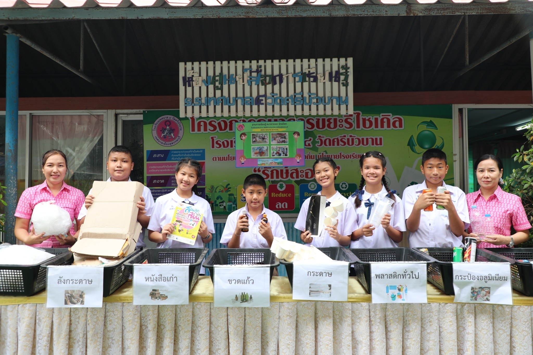 ผอ.ยุวลักษณ์ ชาติชำนาญ ผู้อำนวยการสถานศึกษาฯ พร้อม รองฯอนุสรณ์ อิฐสุวรรณ รองผู้อำนวยการสถานศึกษาฯ คณะครู บุคลากรทางการศึกษา และนักเรียนผู้รับผิดชอบ งานสิ่งแวดล้อมเกี่ยวกับกระบวนการแยกขยะ ร่วมกับเจ้าหน้าที่ลงพื้นที่เก็บข้อมูลโครงการส่งเสริมการขยายผลต้นแบบการจัดการขยะที่ต้นทางสู่พื้นที่ใหม่ พร้อมทั้งสาธิตวิธีการ ในแต่ละ ฐานที่รับผิดชอบ (ฐานธนาคารขยะ, ฐานพืชผักสวนครัว, ฐานน้ำหมักชีวภาพ, ฐานสิ่งประดิษฐ์, ฐานผลิตภัณฑ์สมุนไพร, ฐานปุ๋ยหมักจุลินทรีย์, ฐานต้นไม้ฟอกอากาศ, ฐานผลผลิตหมุนเวียน และฐานเพาะเห็ดนางฟ้า) ณ โรงเรียนเทศบาล ๔ วัดศรีบัวบาน