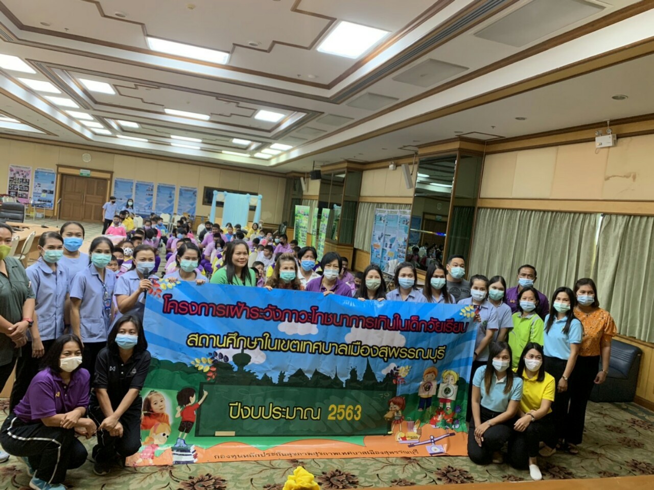ผอ.ยุวลักษณ์ ชาติชำนาญ ผู้อำนวยการสถานศึกษา โรงเรียนเทศบาล ๔ วัดศรีบัวบาน และคณะครู นำนักเรียนเข้าร่วมโครงการเฝ้าระวังภาวะโภชนาการเกินเด็กวัยเรียน ปีงบประมาณ ๒๕๖๓ ในวันที่ ๒๐ กันยายน ๒๕๖๓ ณ ห้องประชุมชั้น ๓