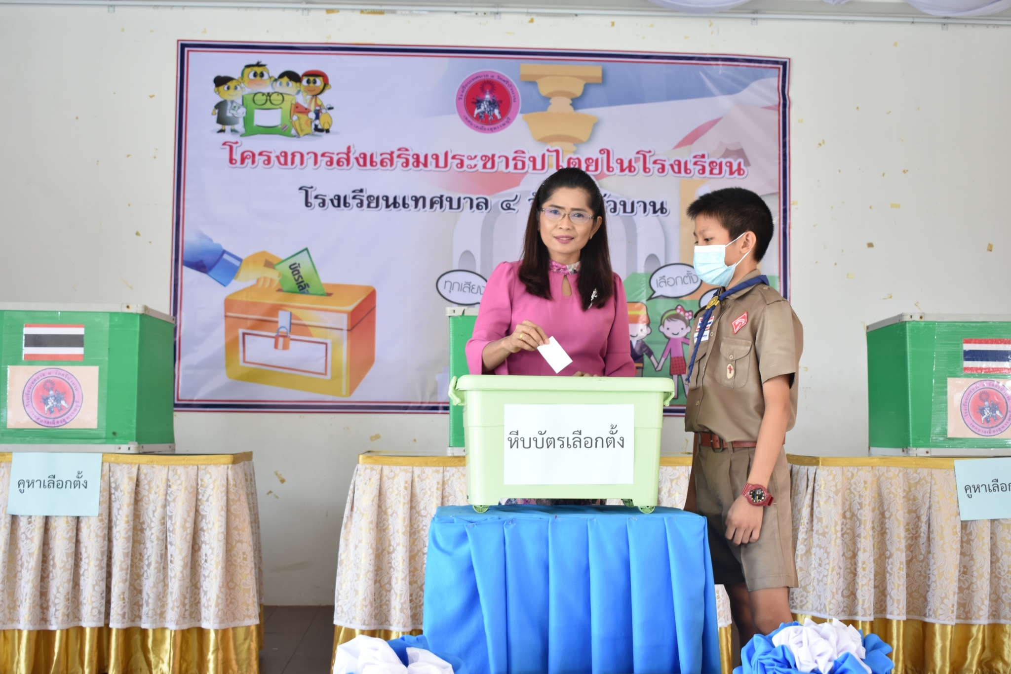 ณ อาคารสังวรวีรวัฒน์ โรงเรียนเทศบาล ๔ วัดศรีบัวบาน