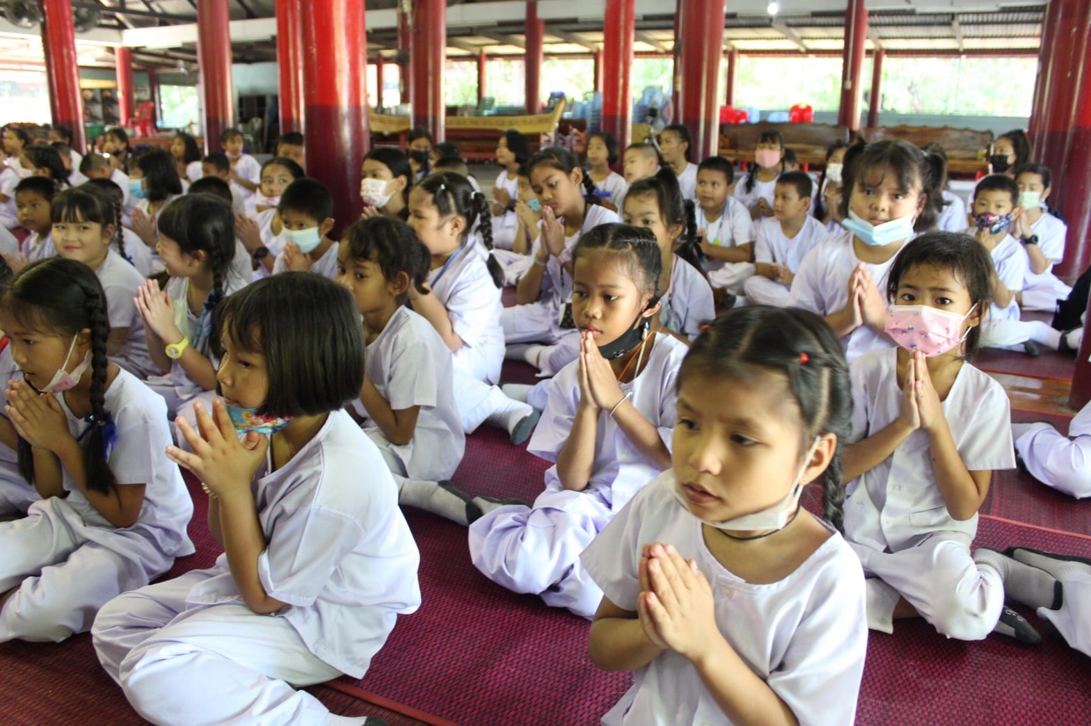 ผอ.ยุวลักษณ์ ชาติชำนาญ ผู้อำนวยการสถานศึกษา โรงเรียนเทศบาล ๔ วัดศรีบัวบาน และคณะครู นำนักเรียนระดับชั้นประถมศึกษาปีที่ ๑ ,๔ และ ๕ เข้าวัดทำบุญ เนื่องในวันออกพรรษา ประจำปี ๒๕๖๓ ในวันที่ ๒ ตุลาคม ๒๕๖๓ ณ วัดศรีบัวบาน