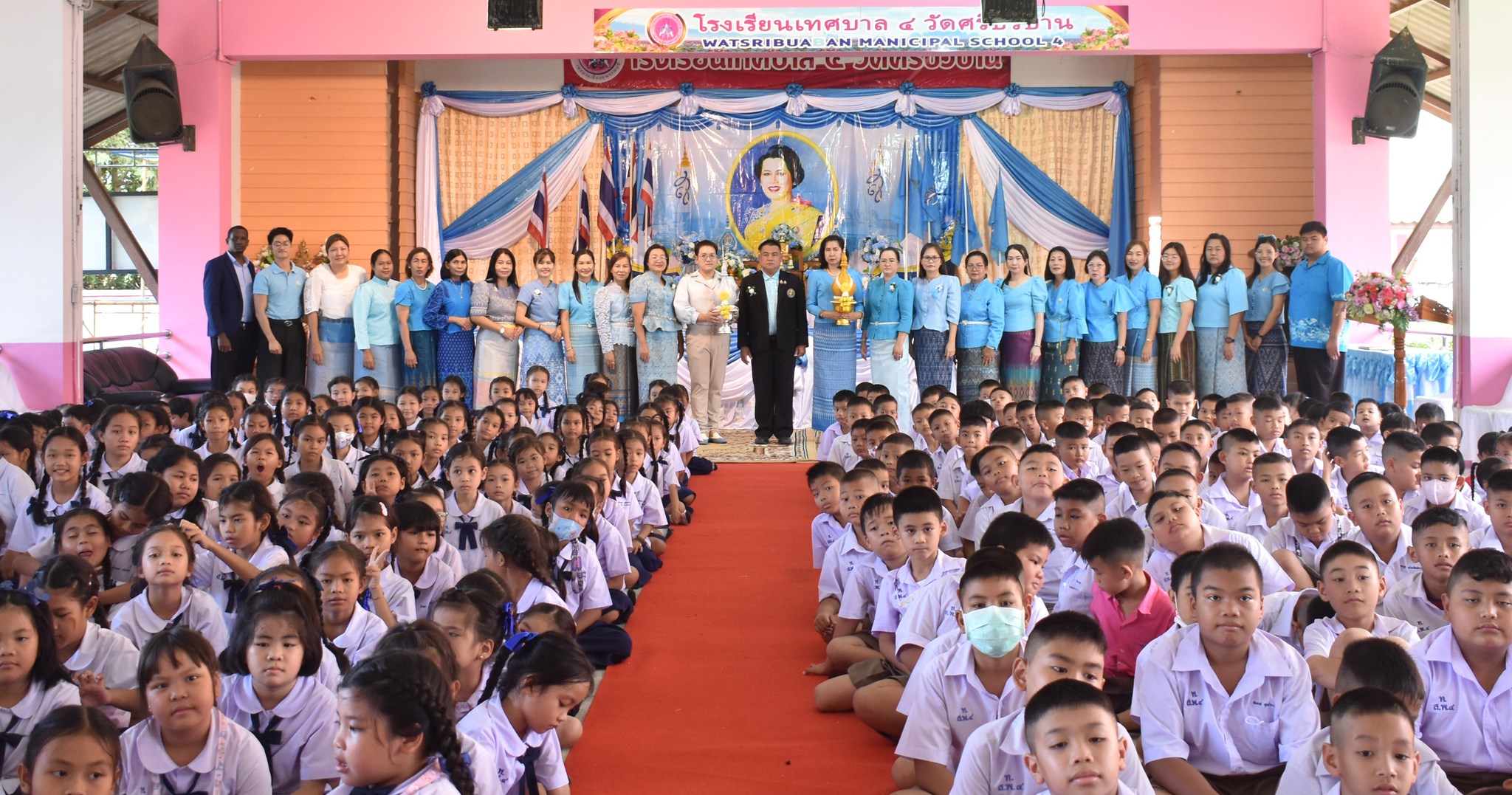 โรงเรียนเทศบาล ๔ วัดศรีบัวบาน จัดกิจกรรมเฉลิมพระเกียรติสมเด็จพระนางเจ้าสิริกิติ์ พระบรมราชินีนาถ พระบรมราชชนนีพันปีหลวง เนื่องในโอกาสวันเฉลิมพระชนมพรรษา ๑๒ สิงหาคม ประจำปีพุทธศักราช ๒๕๖๘ นำโดย ผอ.เฉลิมชาติ รุจิเชาว์ เป็นประธานในพิธี พร้อมด้วย คณะครูและบุคลากรทางการศึกษา นำนักเรียน เข้าร่วมพิธีทำบุญ ถวายคำนับ ถวายพานพุ่มดอกไม้ เปิดกรวยดอกไม้ กล่าวราชสดุดีเฉลิมพระเกียรติ ถวายพระพรชัยมงคล ณ อาคารสังวรวีรวัฒน์